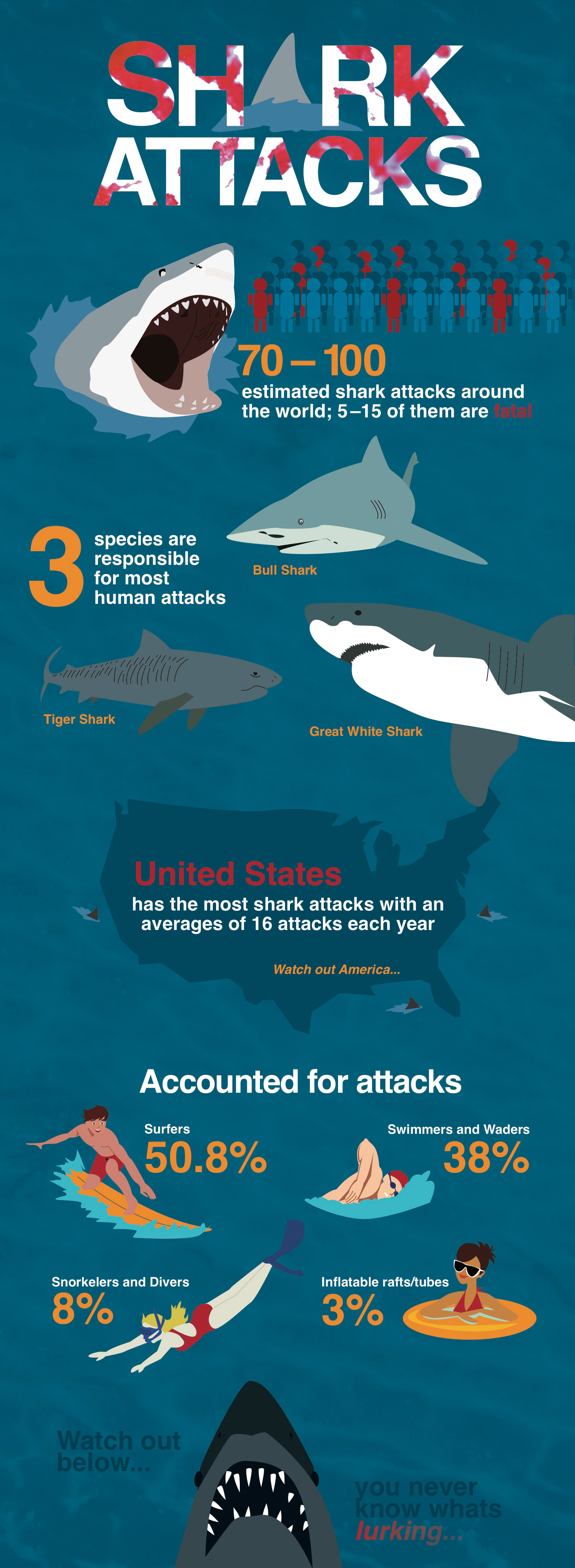 Educating the public about shark attacks with an engaging and visually appealing infographic design.